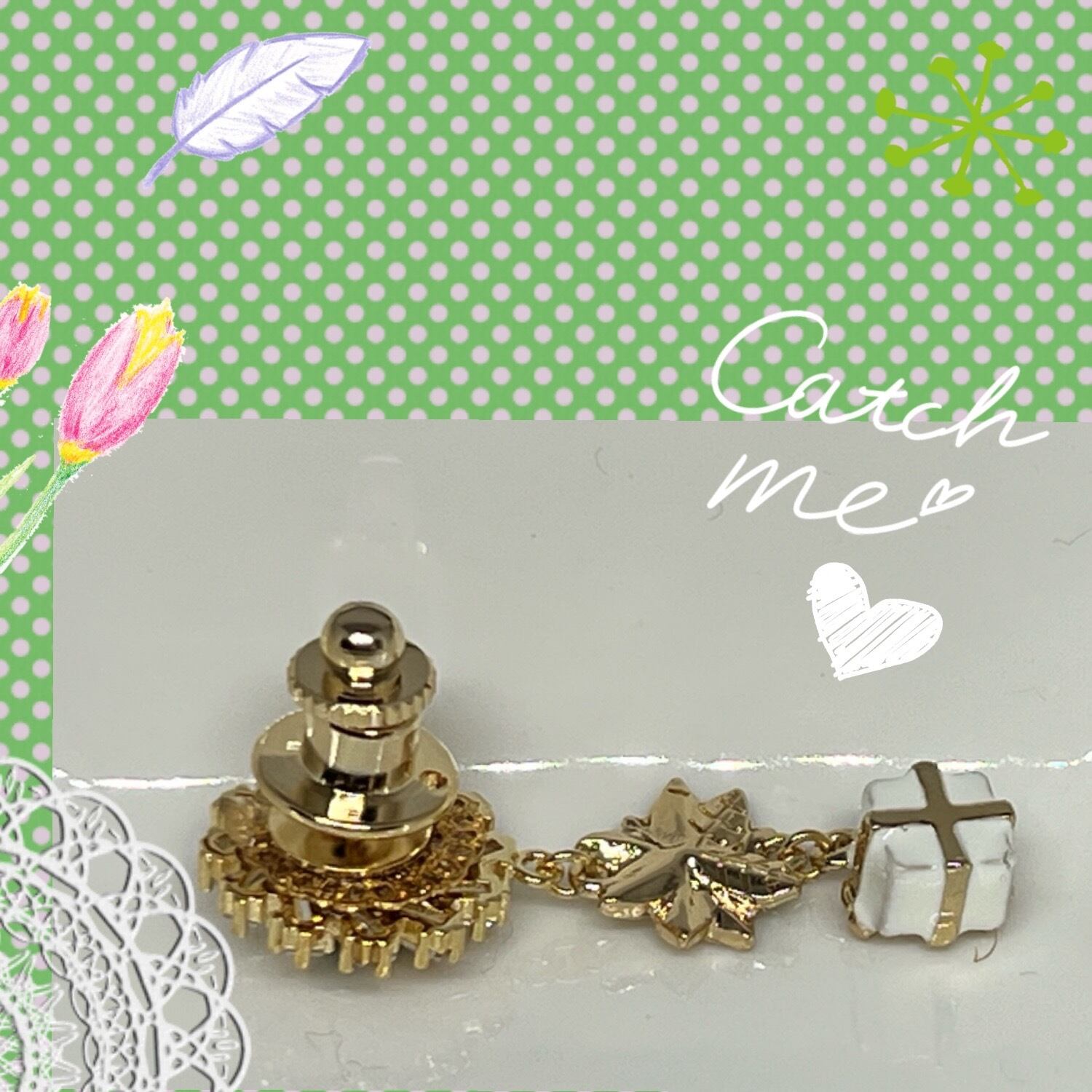 ホワイトのポインセチアとクリスタルビーズ、プレゼントのチャームがクリスマス気分を盛り上げてくれます。